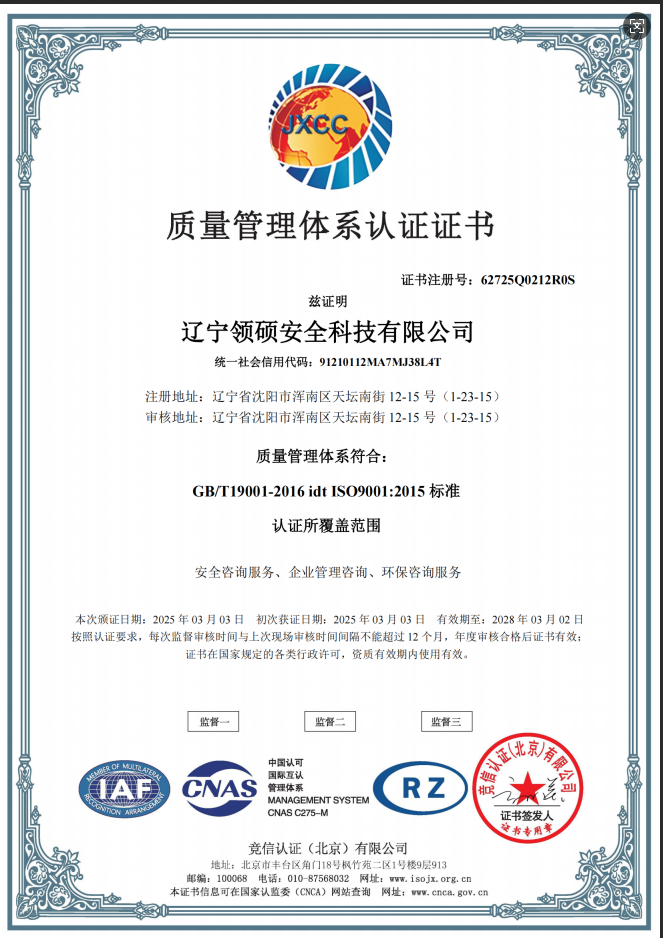 遼寧領(lǐng)碩安全科技有限公司位于遼寧省沈陽(yáng)市渾南區(qū)天壇南街12-15號(hào),注冊(cè)資金300萬(wàn)。主要經(jīng)營(yíng)范圍為遼寧省范圍內(nèi)的安全環(huán)保咨詢,生產(chǎn)安全事故應(yīng)急預(yù)案技術(shù)服務(wù)、企業(yè)雙重預(yù)防機(jī)制建立、履職能力評(píng)估、企業(yè)科研項(xiàng)目安全部分服務(wù)等的技術(shù)服務(wù)機(jī)構(gòu)。現(xiàn)有員工12人,其中包括5名遼寧省級(jí)安全生產(chǎn)專家。成立于2022年4月18日,在盤(pán)錦市成立至今已經(jīng)為30余家企業(yè)提供了安全環(huán)保技術(shù)咨詢。 業(yè)務(wù)范圍包括:技術(shù)服務(wù)、技術(shù)開(kāi)發(fā)、技術(shù)咨詢、技術(shù)交流、技術(shù)轉(zhuǎn)讓、技術(shù)推廣,安全咨詢服務(wù),環(huán)保咨詢服務(wù),標(biāo)準(zhǔn)化服務(wù),企業(yè)管理咨詢,科技中介服務(wù),工程管理服務(wù),特種作業(yè)...查看更多